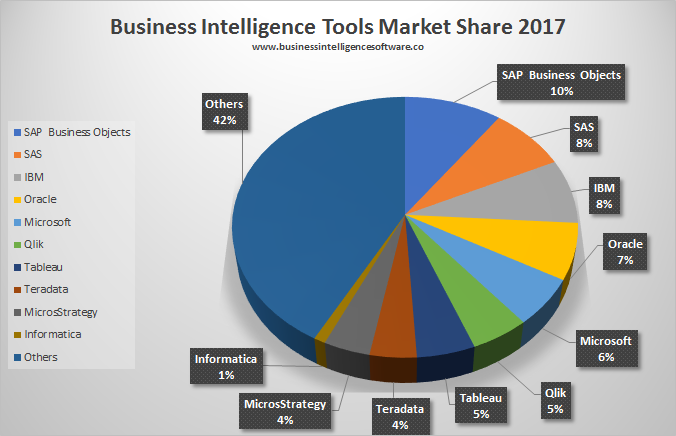 Pemain kunci untuk solusi Business Intelligence adalah SAP, IBM, Oracle, Microsoft, Qlik dan banyak lainnya.
